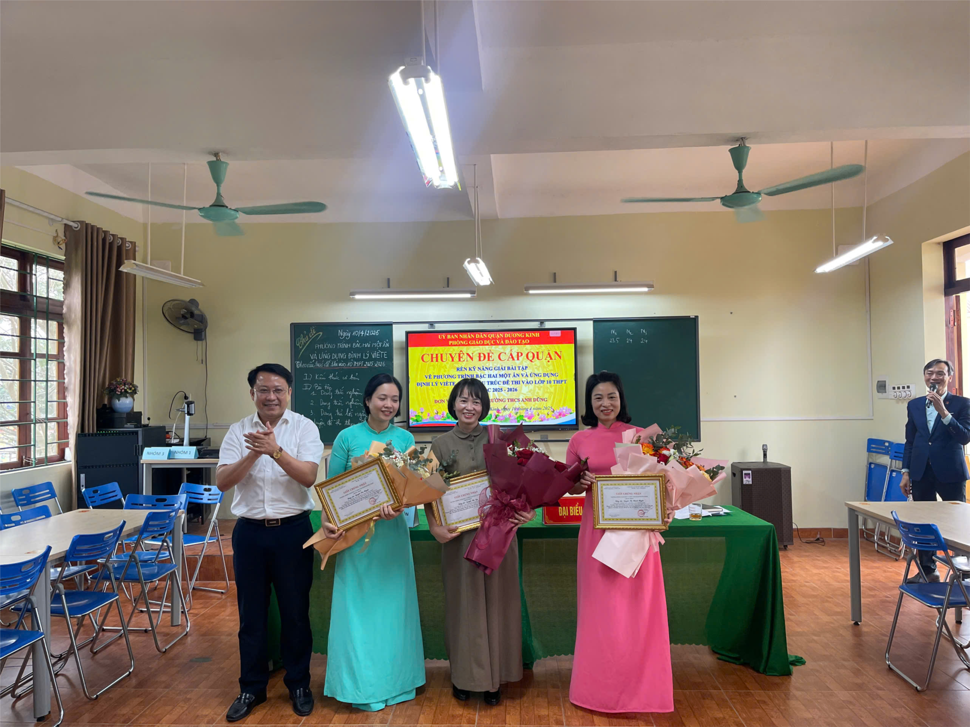 Chiều ngày 10/4/2025, trường THCS Anh Dũng đã tổ chức chuyên đề cấp Quận môn Toán 9. Về dự chuyên đề có đồng chí Trịnh Thị Ngọc Diệp - Phó trưởng Phòng Giáo dục và Đào tạo quận Dương Kinh, các đồng chí cốt cán chuyên môn bộ môn Toán của quận, thành viên Ban chuyên môn: Gồm Đ/c Nguyễn Đức Nam - Hiệu trưởng trường THCS Hoà Nghĩa; Đ/c Bùi Hữu Doanh - TTCM trường THCS Hải Thành; Đ/c Đào Thị Lành - TTCM trường THCS Hưng Đạo cùng tất cả các thầy, cô giáo giảng dạy môn Toán lớp 9 của các trường THCS trong Quận .