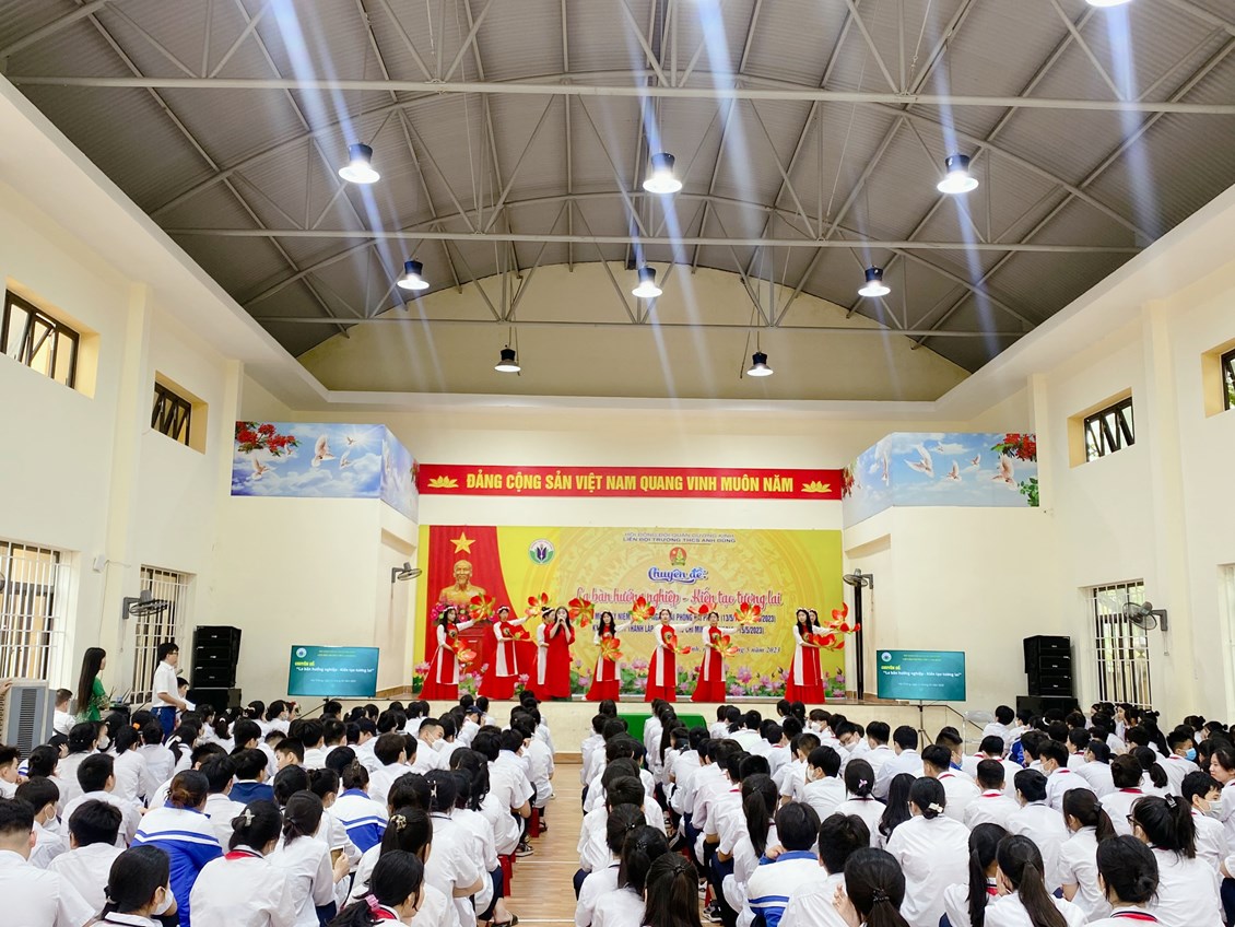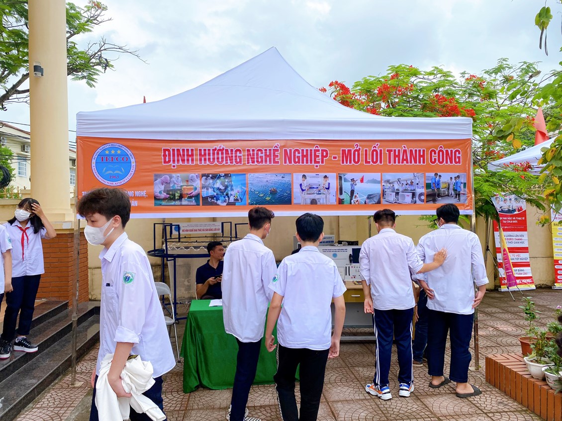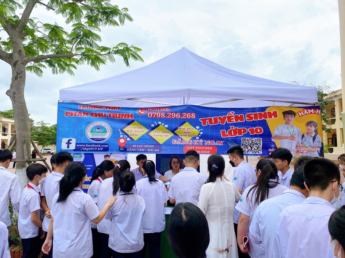 3. Điểm nhấn của chuyên đề là các em học sinh được trải nghiệm các gian hàng trưng bày, tư vấn học tập và hướng nghiệp tương lai của một số đơn vị tham gia hỗ trợ và giao lưu để kết nối cơ hội tìm hiểu các ngành nghề đào tạo tại một số trường như: Trường THPT Mạc Đĩnh Chi, trường THPT Phan Chu Trinh, trường Cao đẳng nghề công nghệ kinh tế và thuỷ sản, Trung tâm Anh ngữ Hali…