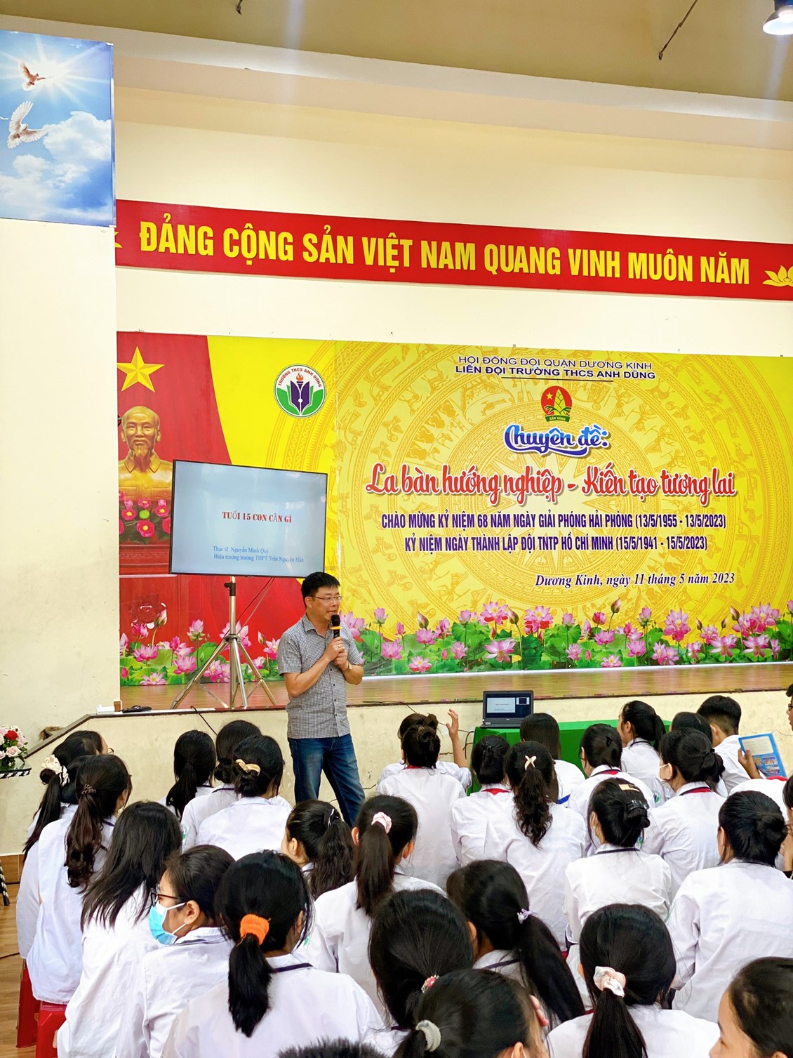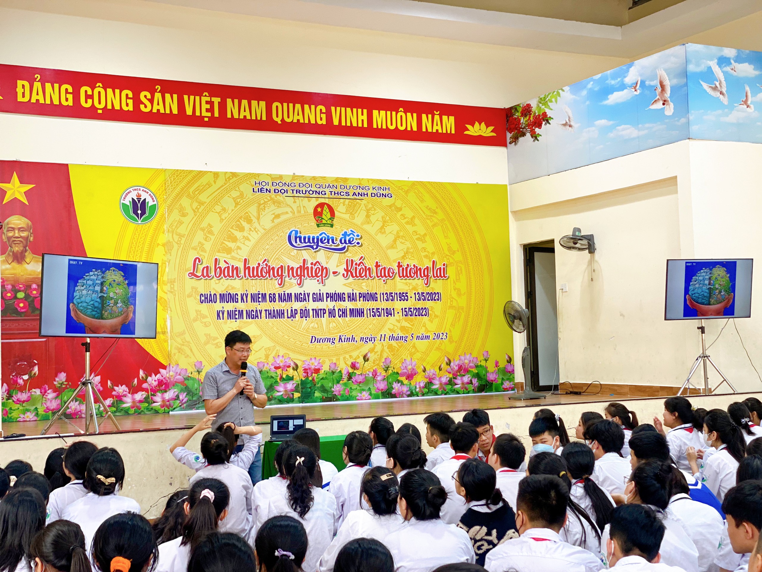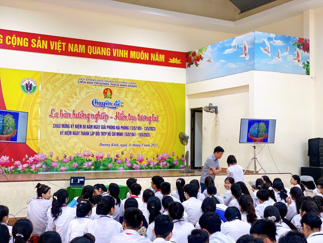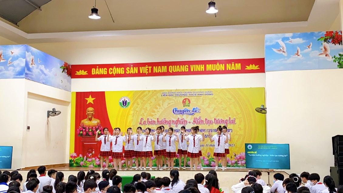 Nhằm định hướng nghề nghiệp cho học sinh THCS, từ đó tạo cơ sở để học sinh tập trung trau dồi những kỹ năng và bồi dưỡng những kiến thức cần thiết, sáng 11/ 05, Liên đội Trường THCS Anh Dũng đã tổ chức chuyên đề cấp thành phố “La bàn hướng nghiệp - Kiến tạo tương lai”