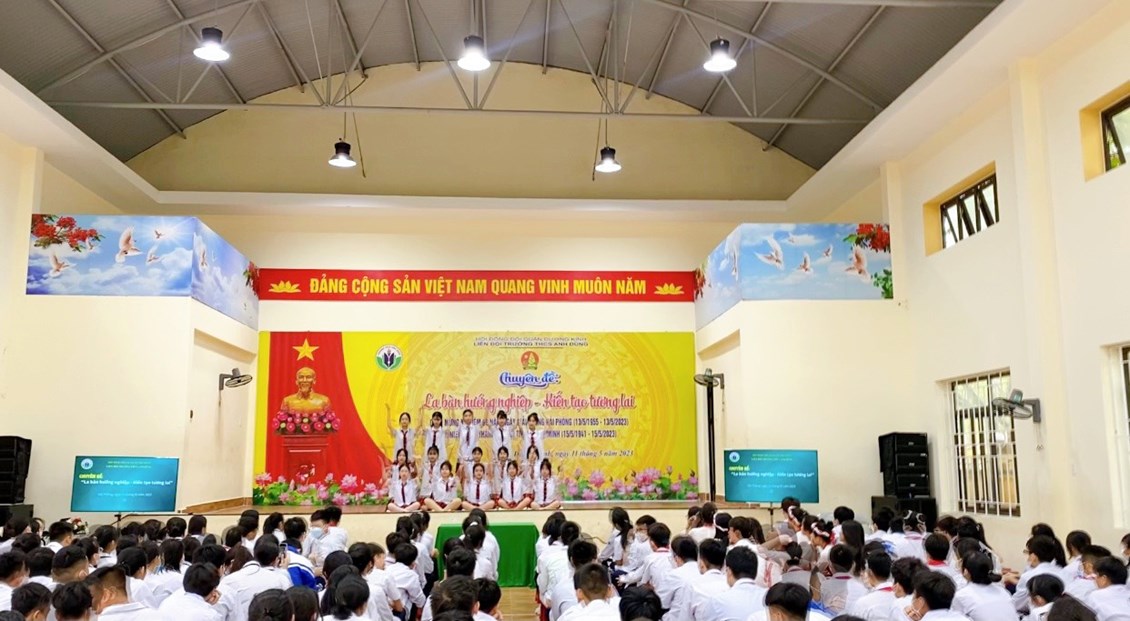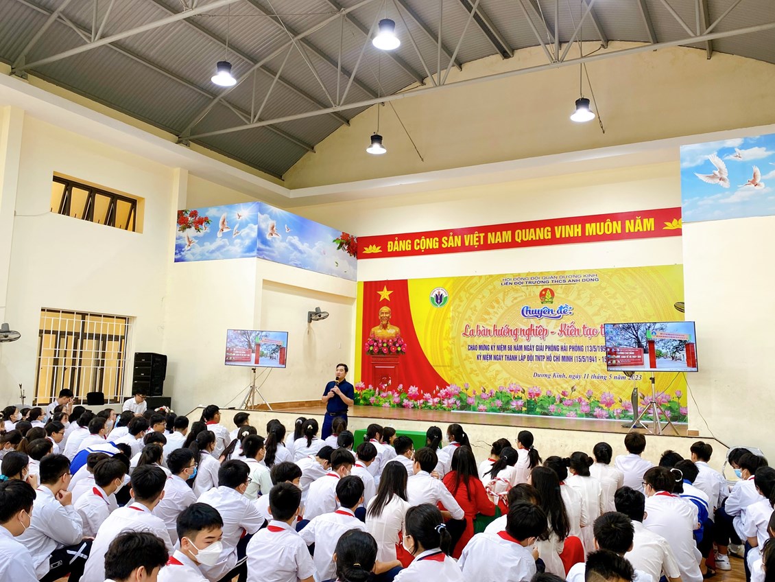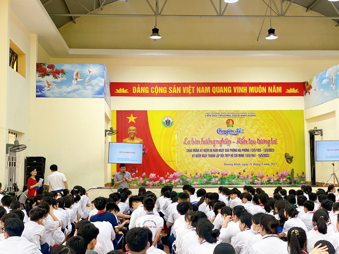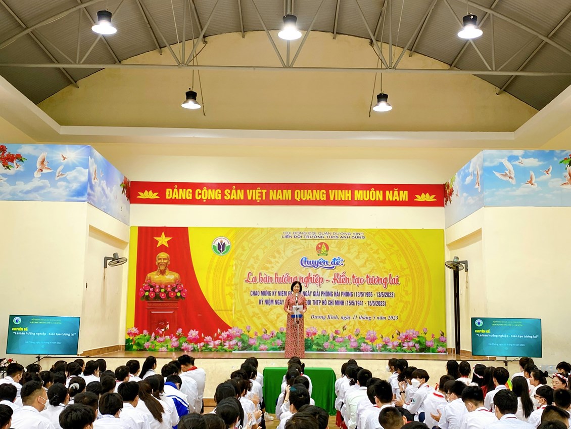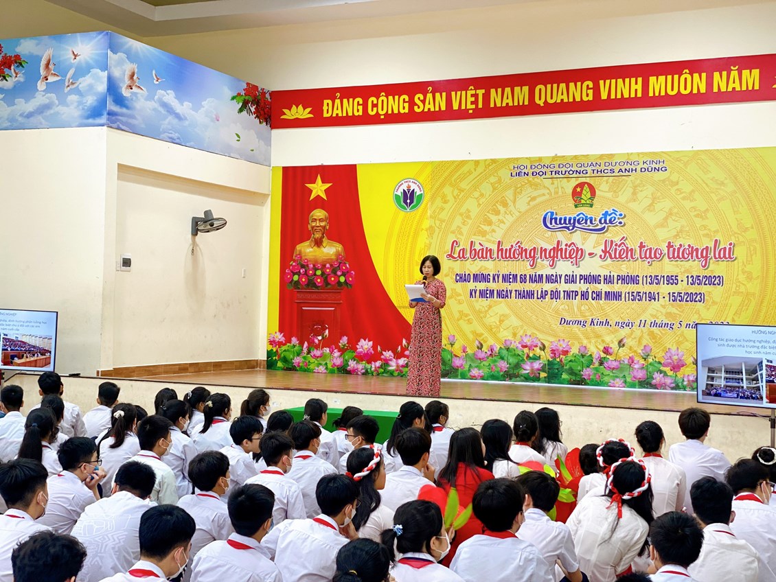 Nhằm định hướng nghề nghiệp cho học sinh THCS, từ đó tạo cơ sở để học sinh tập trung trau dồi những kỹ năng và bồi dưỡng những kiến thức cần thiết, sáng 11/ 05, Liên đội Trường THCS Anh Dũng đã tổ chức chuyên đề cấp thành phố “La bàn hướng nghiệp - Kiến tạo tương lai”