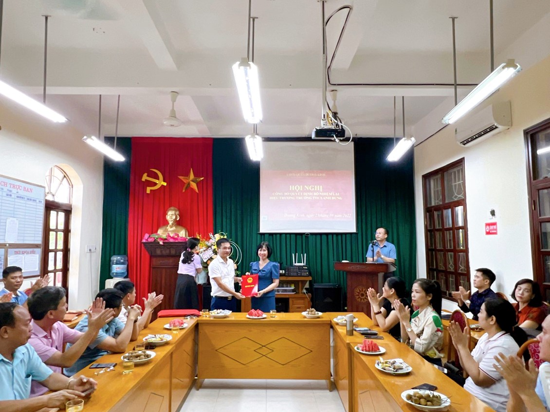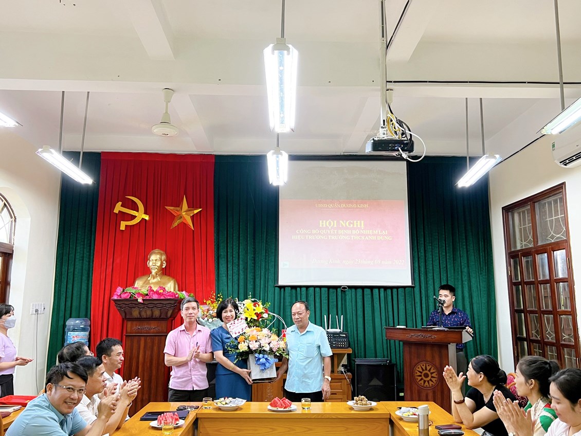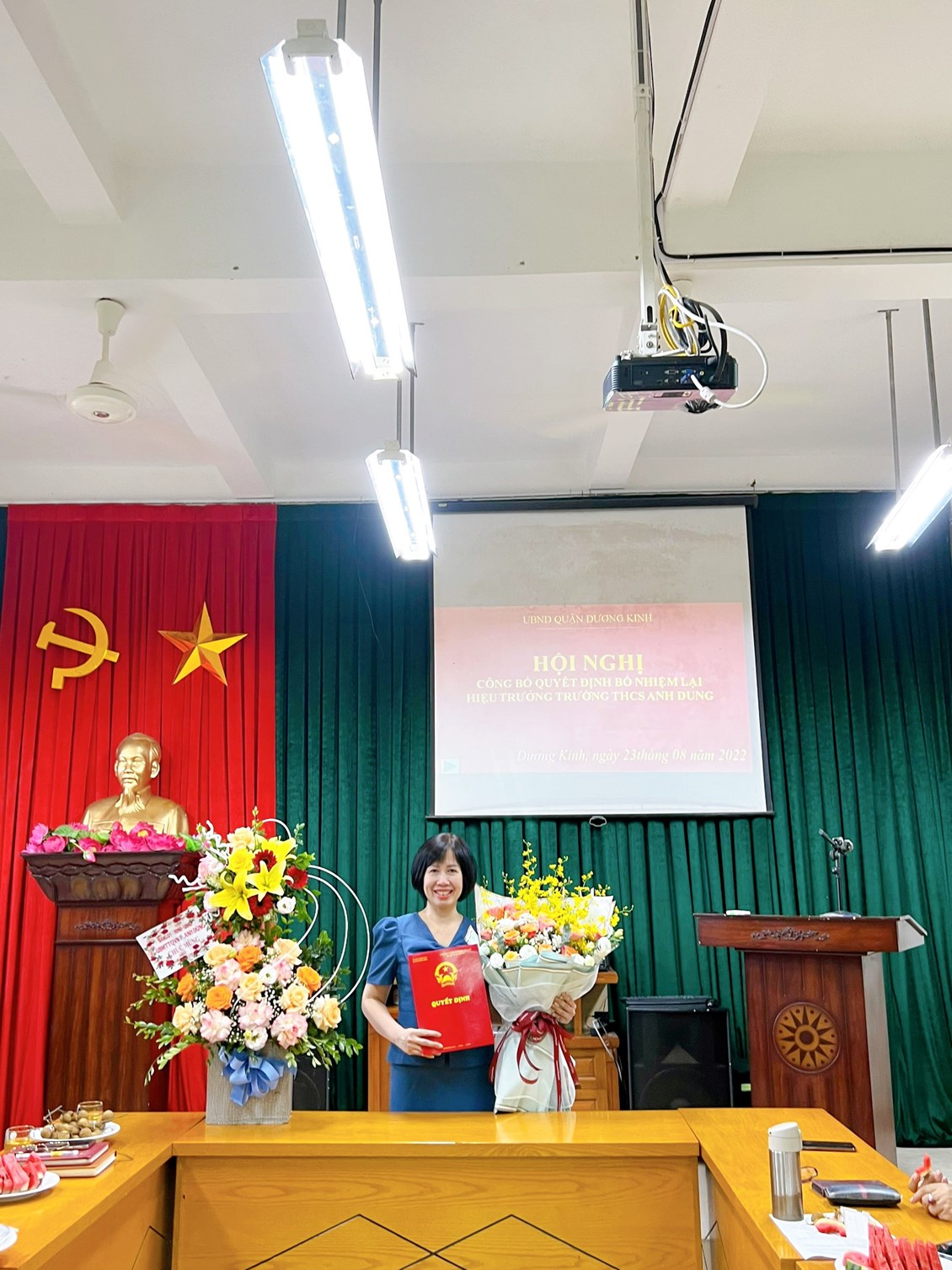 Thực hiện kế hoạch của UBND huyện về việc luân chuyển, điều động bổ nhiệm cán bộ quản lý các trường học trên địa bàn, Chủ tịch UBND quận đã ban hành Quyết định về việc bổ nhiệm lại chức vụ Hiệu trưởng Trường THCS Anh Dũng đối với bà Lê Thị Thanh Thảo - Hiệu trưởng Trường THCS Anh Dũng. Thời gian bổ nhiệm 5 năm kể từ ngày 18/8/2022.