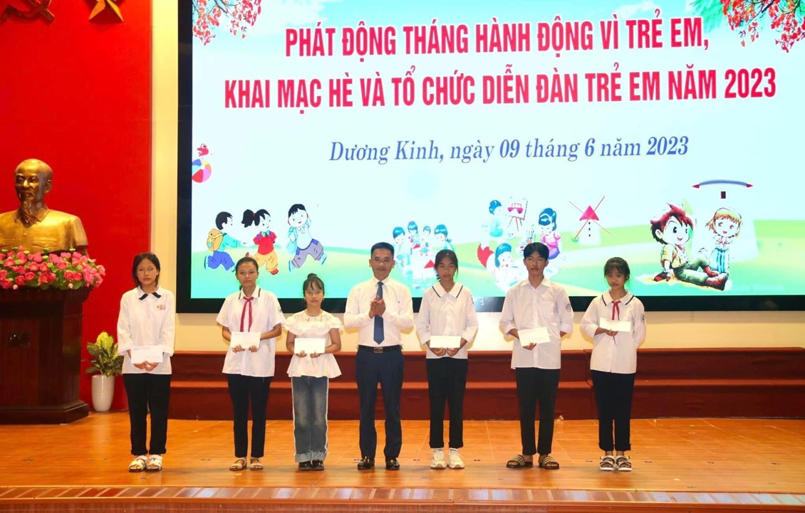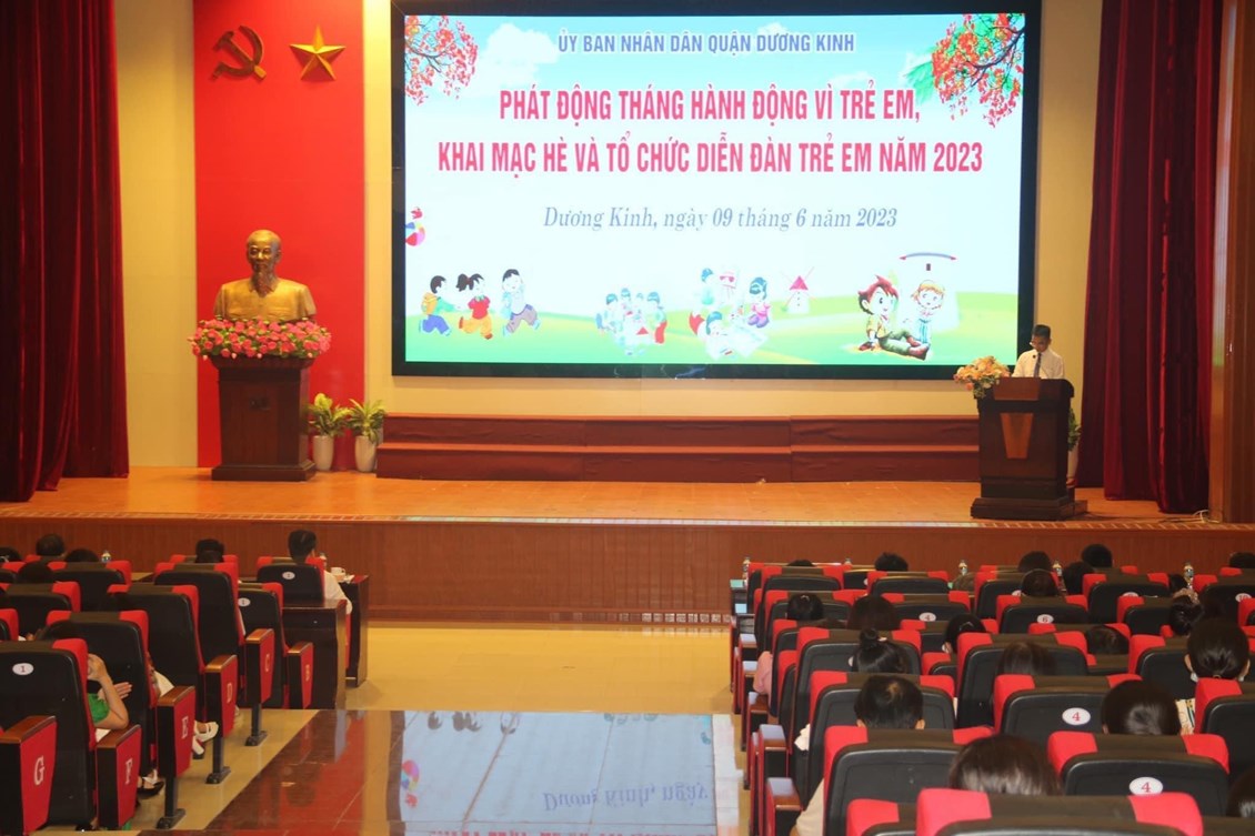 Sáng 09/6/2023, tại Hội trường Trung tâm hành chính quận, UBND quận Dương Kinh tổ chức Khai mạc hoạt động Hè năm 2023 với chủ đề “Vì cuộc sống an toàn, lành mạnh cho trẻ em trong thời đại công nghệ số”, Phát động tháng hành động vì trẻ em, Diễn đàn trẻ em năm 2023.