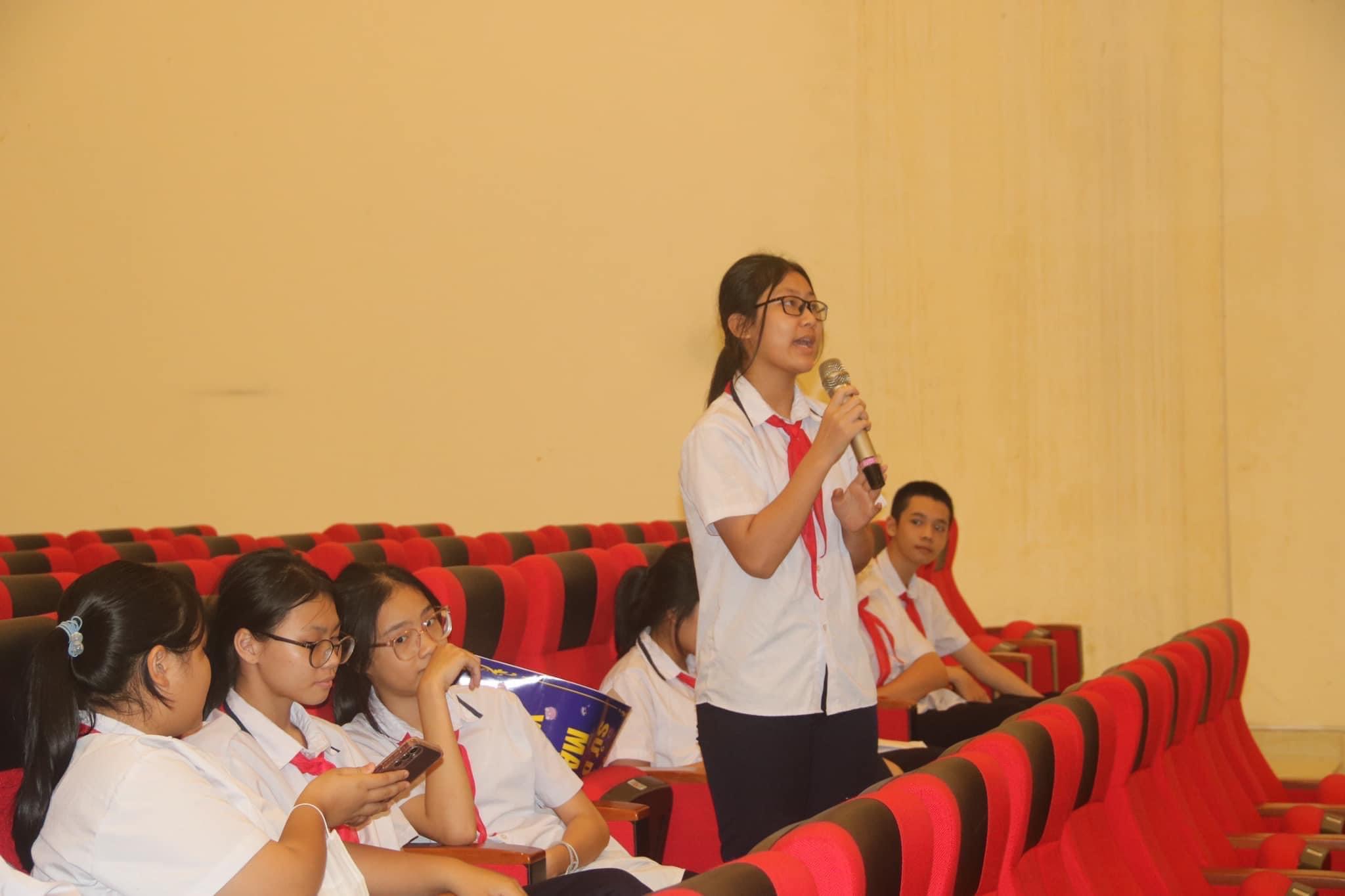 Tại Diễn đàn, em Thanh Ngọc - học sinh lớp 7C, trường THCS Anh Dũng đại diện cho hơn 7000 thiếu nhi quận tham gia diễn đàn đã đưa ra các câu hỏi, bày tỏ những tâm tư, kiến nghị của các em tới các cô, bác lãnh đạo và các ngành chức năng của quận về các vấn đề. Nhiều ý kiến, thắc mắc của các em đã được lãnh đạo các ngành giải đáp cũng như tiếp thu để triển khai thực hiện hiệu quả hơn nhằm đáp ứng tốt nhất các quyền của trẻ.