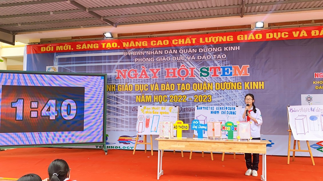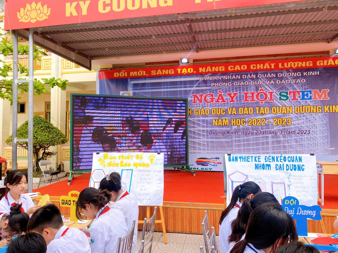 Sáng 23/3, tại Trường THCS Hòa Nghĩa, quận Dương Kinh tổ chức Ngày hội STEM năm học 2022 – 2023. “Ngày hội STEM” của ngành Giáo dục và Đào tạo quận Dương Kinh được thực hiện trong 01 ngày với nhiều hoạt động. Trong đó có hoạt động minh họa tiết dạy giáo dục STEM “Chế tạo đèn kéo quân” do cô giáo Bùi Thị Vi của trường THCS Anh Dũng thực hiện đã thành công rực rỡ. Qua tiết học giúp các em học sinh tham gia vào các hoạt động thực hành tự mình tạo ra sản phẩm, từ đó tạo hứng thú học tập, tư duy sáng tạo.